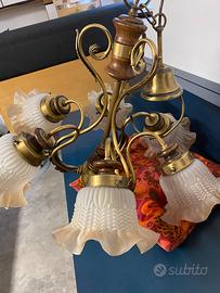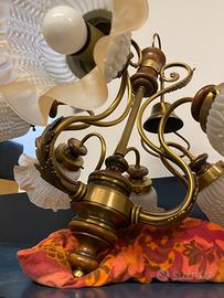 Elegante e sempre attuale lampadario a sei luci con campane in vetro.