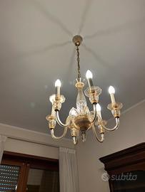 Lampadario a sei luci in vetro di Murano, De Majo , colore oro.