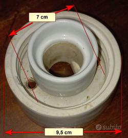 Lampadario a sfera in vetro bianco e base in porcellana. Diametro sfera 14 cm. Da ritirare a Modena
