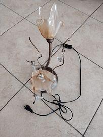 2 Abat jour da appoggio, sempre in ferro battuto con bracci decorati a forma di foglie in vetro.