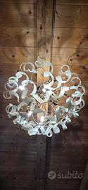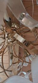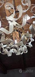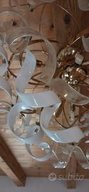 Lampada a soffitto con struttura in metallo dorato e riccioli in vetro bianco e trasparente. In ottimo stato, necessita soltanto di essere spolverato. 1 ricciolo bianco di ricambio incluso. Brand: Metal Lux ASTRO. 30h x 60x60 cm Valore della plafoniera nuova: 741,76€