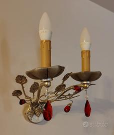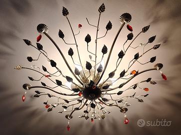 Vendo come da foto lampadario a soffitto e applique in ottimo stato. Ferro battuto argento anticato e cristalli. Pezzi unici realizzati su commissione.