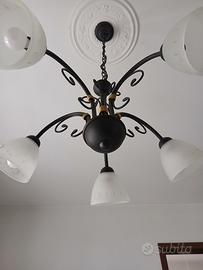 vendo lampadario da soffitto metallo e vetro con cinque punti luci