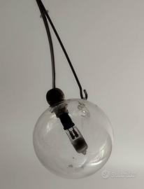 lampadario a sospensione in acciaio inox con 12 braccia. Bulbi in vetro soffiato. attacchi G4 per lampade alogene o a led.