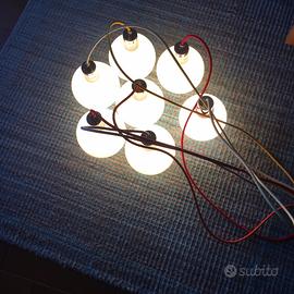 Vendo lampadario a sospensione 5 sfere opale bianco con corde colorate. Come nuovo (Non è mai stato montato) N.B . Una delle sfere è stata sostituita e sebbene abbia la stessa forma delle altre, risulta di un bianco leggermente diverso.
