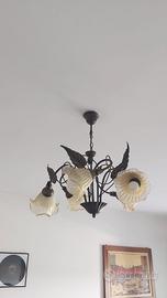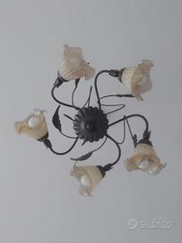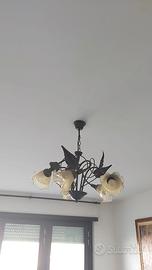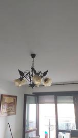 Lampadario a sospensione a 5 luci color ruggine con struttura in metallo e paralumi floreali in vetro color champagne. Non sono pratico, smontaggio a carico dell'acquirente. Via Martiri delle Foibe 11 Sesto San Giovanni. 3332436872