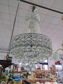 Vendiamo bellissimo lampadario a sospensione con cristalli e sfere di vetro. In foto si vedono delle sfere mancanti che sono però in nostro possesso.