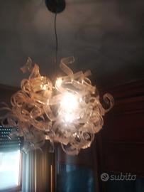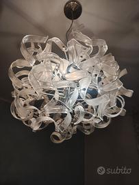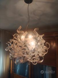 lampadario a sospensione ASTRO da 50 Ccm di diametro con struttura in acciaio cromato a raggi con inserti in vetro trasparente con lampade a led a risparmio energetico