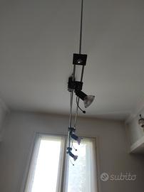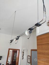 Lampadario a sospensione completo di faretti alogeni orientabili, funzionante, perfetto. Ottimo complemento d'arredo per cucine o ufficio.