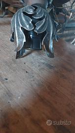 Lampadario a sospensione con ruota di carro in legno e petalii in ferro battuto e con 6 luci di diametro 60cm