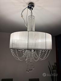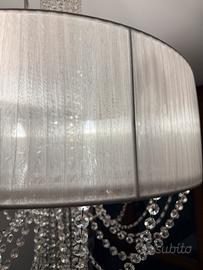 Vendo per cambio arredamento bellissimo lampadario Affralux di design che unisce l'eleganza del cristallo allo stile moderno del paralume in tessuto. Il lampadario crea un’atmosfera calda e raffinata grazie al gioco di riflessi prodotto dalle gocce di cristallo interne e inferiori.