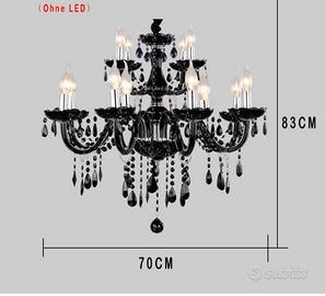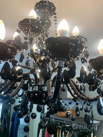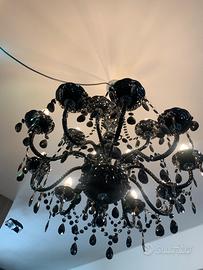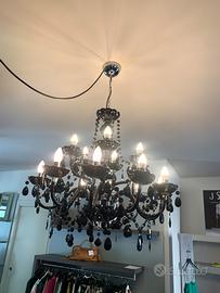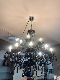 Lampadario a sospensione in cristallo e plexiglas nero von gocce e catenelle, 25 luci , molto luminoso e d’effetto! Nuovo