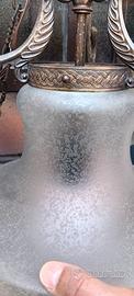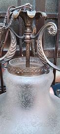 Lampadario a sospensione deco' in vetro e bronzo dorato,anni '40, finemente cesellato e con vetro opacizzato, larghezza cm.28 e h.cm 35 alla ghiera+ catena,vendo. Prezzo trattabile