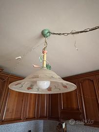 Vendo lampadario a sospensione con paralume in vetro decorato a mano, perfetto per ambienti rustici o classici, come cucine o soggiorni.