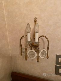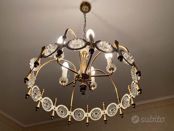 Lanpadario anni 60 a sospensione con relative 2 applique a parete coordinate. Ottone dorato e cristalli. Ritiro a mano, pagamento contanti No perditempo