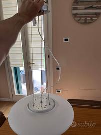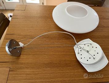 Vendo per cambio arredo, lampadario a sospensione Ideal Lux modello Smarties. I cavi d'acciaio che si vedono in foto sono già alla lunghezza massima di circa 56 cm, in ogni caso sono accorciabili. Ospita 3 lampadine con attacco E27 (incluse). Tenuto molto bene. Vetro perfetto (diametro 50 cm)