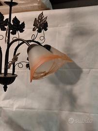 Vendo lampadario a sospensione in ferro battuto con decorazioni a foglia e 3 punti luce.