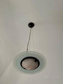 Lampadario a sospensione dallo stile moderno, con struttura in metallo nero e diffusore in vetro satinato. Design essenziale e versatile, perfetto per soggiorno, cucina o studio.