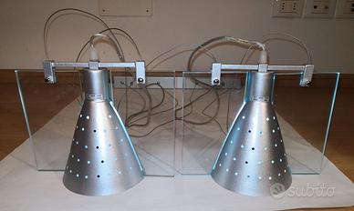 Lampadario a sospensione mod. Melange composto di 2 campane metalliche traforate di colore grigio metallizzato. Diametro cm.15 con inserti in lastre di vetro laterali. Altezza massima dal soffitto cm.130, (eventualmente accorciabile). Si possono inserire anche lampadine di più grandi dimensioni, rispetto a quelle in foto, purché di tipo standard attacco E27 max 60W cad. Lampadario nuovo mai montato o utilizzato fornito di imballaggio, aperto solo per le foto. Causa termine lavori ho disponibili n.2 pezzi ognuno con la propria scatola. Il prezzo esposto si riferisce al singolo lampadario in foto, le lampadine non sono comprese.