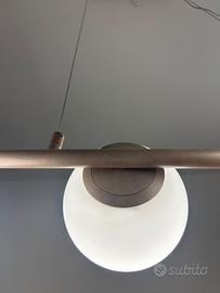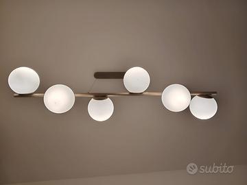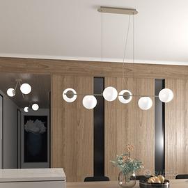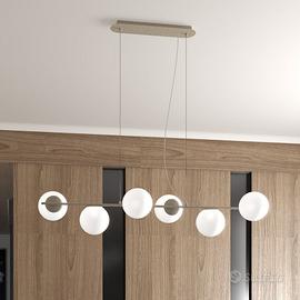 Il lampadario moderno della collezione Boomerang è una perfetta fusione di stile e funzionalità, comprato due anni fa da illumitec Catania, non è mai stato usato perché abbiamo cambiato disposizione degli spazi, compreso di lampadine è ideale per arricchire soggiorni o zone pranzo moderne. Realizzato in alluminio verniciato color sabbia, presenta un design raffinato completato da sfere in vetro bianco satinato, che diffondono una luce morbida e omogenea, creando un’atmosfera accogliente. I cavi regolabili permettono di personalizzare l’altezza del lampadario, adattandolo a spazi di diverse dimensioni e necessità. Perfetto per ambienti minimalisti, è compatibile con lampadine LED E27 a basso consumo per un’illuminazione efficiente e di lunga durata. Costo primario: 280 euro