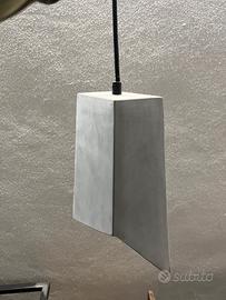 Lampadario a sospensione. È costituito da uno schermo in calcestruzzo che è stato fissato alla sospensione con un cavo. Fa luce esclusivamente verso il basso, rendendolo ideale per illuminare tavoli o banconi. Attacco lampadina E27. Può essere dotato di tutti i tipi di lampadine fino a 40W. Se si utilizza una sorgente luminosa dimmerabile, la luminosità può essere regolata da un dimmer. Dimmer e lampadine non sono inclusi. Disponibili 7 usati meno di 6 mesi e 6 nuovi mai installati.