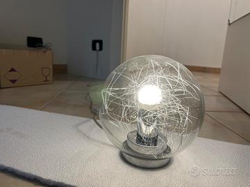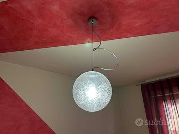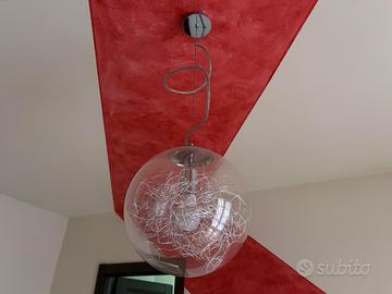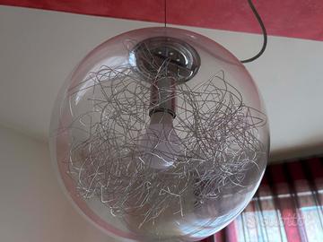 n°1 lampadario a sospensione in vetro + n°2 abat jour (lumetti / lampade da tavolo), all'interno della sfera in vetro vi sono dei fili di acciaio intrecciati per un particolare effetto visivo.