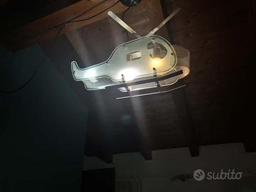 Vendo bellissimo lampadario a sospensione modello 639 della Searchlight a 3 luci a forma di elicottero in nichel satinato. Realizzata in vetro e metallo, di facile installazione. Bellissimo per una cameretta dei bambini