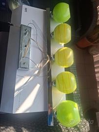Lampadario per cucina a sospensione regolabile con cavi in acciaio, 5 paralumi in vetro colorato