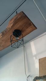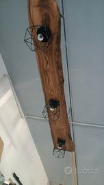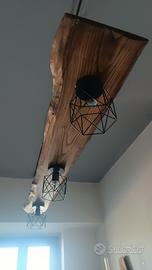 lampadario a sospensione rustico in legno castagno trattato e ferro battuto..portalampada e27