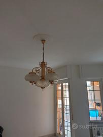 lampadario a sospensione con vetro di Murano, cinque punti luce. Ritirabile a Finale Ligure o Vailate provincia di Cremona.