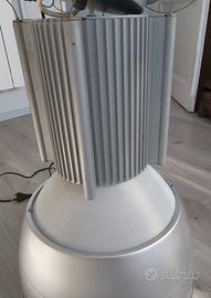 Lampadario a sospensione stile industriale della Trilux in metallo. Il dispositivo e funzionante ed in ottime condizioni. Diffusore in alluminio anodizzato per la parte inferiore ed in acrilico per la parte superiore. Attacco per due lampadine. Le dimensioni sono: diametro diffusore 40cm circa, altezza lampadario 60cm circa + fili di sospensione regolabili e placca metallica da applicare sul soffitto.