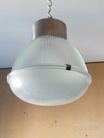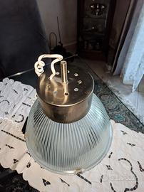 Lampadario a sospensione Tito Agnoli per Oluce mod. 4409 Italia 1958 con struttura in ottone e metallo laccato. Diffusori in vetro stampato.