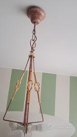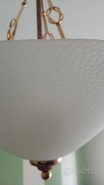 lampadario con piatto in vetro bocciato a sospensione. Diametro 55cm circa a 3 portalampade e lampadine.