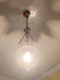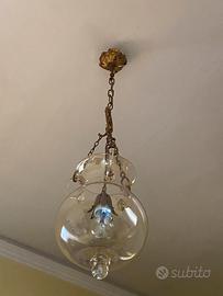 Lampadario vintage in ottone e vetro soffiato Vendo elegante lampadario vintage in ottone con globo in vetro soffiato trasparente. Pezzo originale, ideale per ingressi, corridoi, camere o ambienti in stile classico. Struttura in ottone con dettagli decorativi, vetro integro e luminosità molto piacevole. Funzionante e pronto da installare. Condizioni: ottime, nessuna crepa o difetto visibile. Ritiro: a mano a Torino, quartiere Crocetta