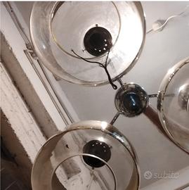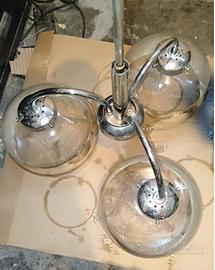 LAMPADARIO A SOSPENSIONEVINTAGE, ORIGINALE ANNI 60 COSTITUITO DA STRUTTURA PRINCIPALE IN ACCIAIO E TRE SFERE DI VETRO SOLO PAGAMENTO ANTICIPATO DIRETTO