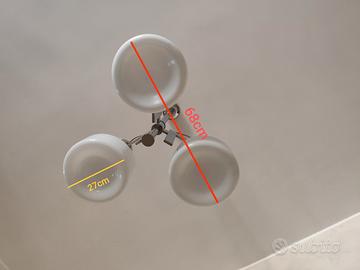 lampadario a sospensione vintage in acciaio e vetro peso complessivo circa 10kg cablaggio cavi sostituito plafoniere in vetro corpo in acciaio