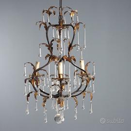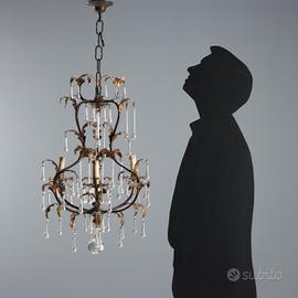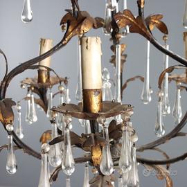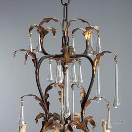 Lampadario a tre luci in ferro e lamierino dorato lavorato a foglie. Puntale e pendenti in vetro trasparente. Italia, fine XIX Secolo. Codice: ANILLA0308092 Condizione prodotto: Lampada che a causa dell'et e dell'usura pu richiedere interventi di restauro, e probabilmente presenta un impianto di elettrificazione non adeguato alle norme vigenti. Cerchiamo di presentare lo stato reale della lampada nel modo pi completo possibile con le foto. Qualora alcuni particolari non risultassero chiari dalle foto, fa fede quanto riportato nella descrizione. Misure: Largh.:45.00 cm, Alt.:94.00 cm, Prof.:0.00 cm QUESTO ARTICOLO E' DISPONIBILE PRESSO IL NEGOZIO DI CAMBIAGO Venditore: Barbara (dal Luned al Venerd : dalle 9:00 alle 19:00, Sabato: dalle 10:00 alle 19:00) Per maggiori informazioni contattateci su Whatsapp. Disponibile ad inviare video o foto integrative su Whatsapp Di Mano in Mano, Negozio dell'usato di Cambiago, via Castellazzo 8. Oltre 4000mq espositivi, tra usato, vintage, modernariato, antiquariato, arte e libri. Esplora il nostro portale mercatiniusato.org per scoprire centinaia di arredi usati.