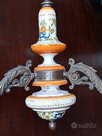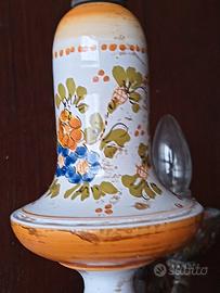 Elegante lampadario a tre luci con rifiniture ceramica Castelli dipinta a mano Funzionante