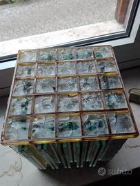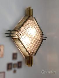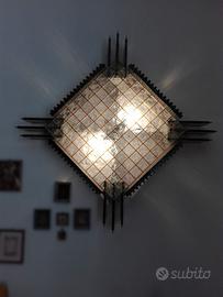 Vendo lampadario murale artigianale in vetro e metallo e abat-jour coordinata, entrambi pezzi unici realizzati a mano con vetro fuso spesso e struttura in metallo. Stile geometrico moderno con richiami déco, ideali per ambienti di design, loft, salotti, studi o spazi artistici.