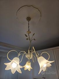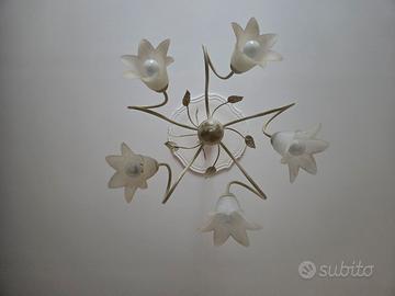 Il Coordinato Comprendente 1 Lampadario Camera da Letto Metallo Color Avorio con 5 Paralumi in Vetro Satinato Attacco E14 completo di Lampade Led 5W. + 2 Abat jour da comodino Attacco E14 + 2 Applique da Parete Attacco E14