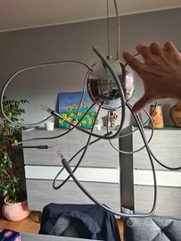 Lampadario in acciaio. Braccia in acciaio orientabili. Lampadine bispina.