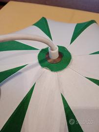 Originale lampadario a forma di ombrello di stoffa a righe bianche e verdi. È in ottime condizioni perché è stato usato pochissimo. Misura 60 cm di diametro.