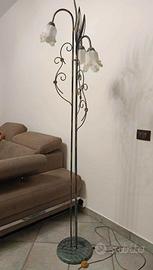 Un lampadario da terra in ferro battuto con motivi floreali può essere un elemento decorativo molto elegante per una stanza. Con un'altezza di due metri, può essere collocato in un angolo o vicino a un divano per creare un'atmosfera calda e accogliente.