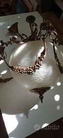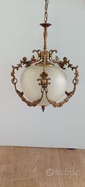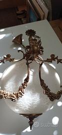 Vendo per inutilizzo lampadario risalente agli anni '20 del secolo scorso, fregi in fusione di metallo, boule di vetro. Prezzo trattabile