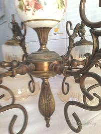 Lampadario anni 40 ottone ceramica e vetro