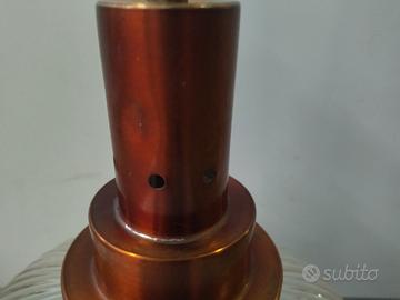 Bello e classico con le tipiche striature degli anni 40/50 , ha un altezza totale di 92 cm , la boccia ha un diametro di 28 cm, spedizione possibile ma no con Postedelivery , un piccolo difetto che la foto evidenzia