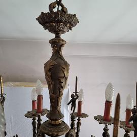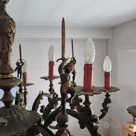 Lampadario in bronzo anni 50, con 5 putti e 15 luci in ottimo stato.