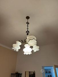 Lampadario anni 50 vintage antico con copri luci in vetro.