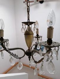 lampadario dei primi anni 60, gommato da gocce di cristallo, e pendente. leggermente sbiadito in colore.