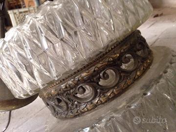lampadario di alto pregio che risale agli anni 60'. 4 lampadine. Misure: larghezza 25 cm, altezza vetro 20 cm, parte metallica dal vetro ad inizio catena altezza 20 cm.